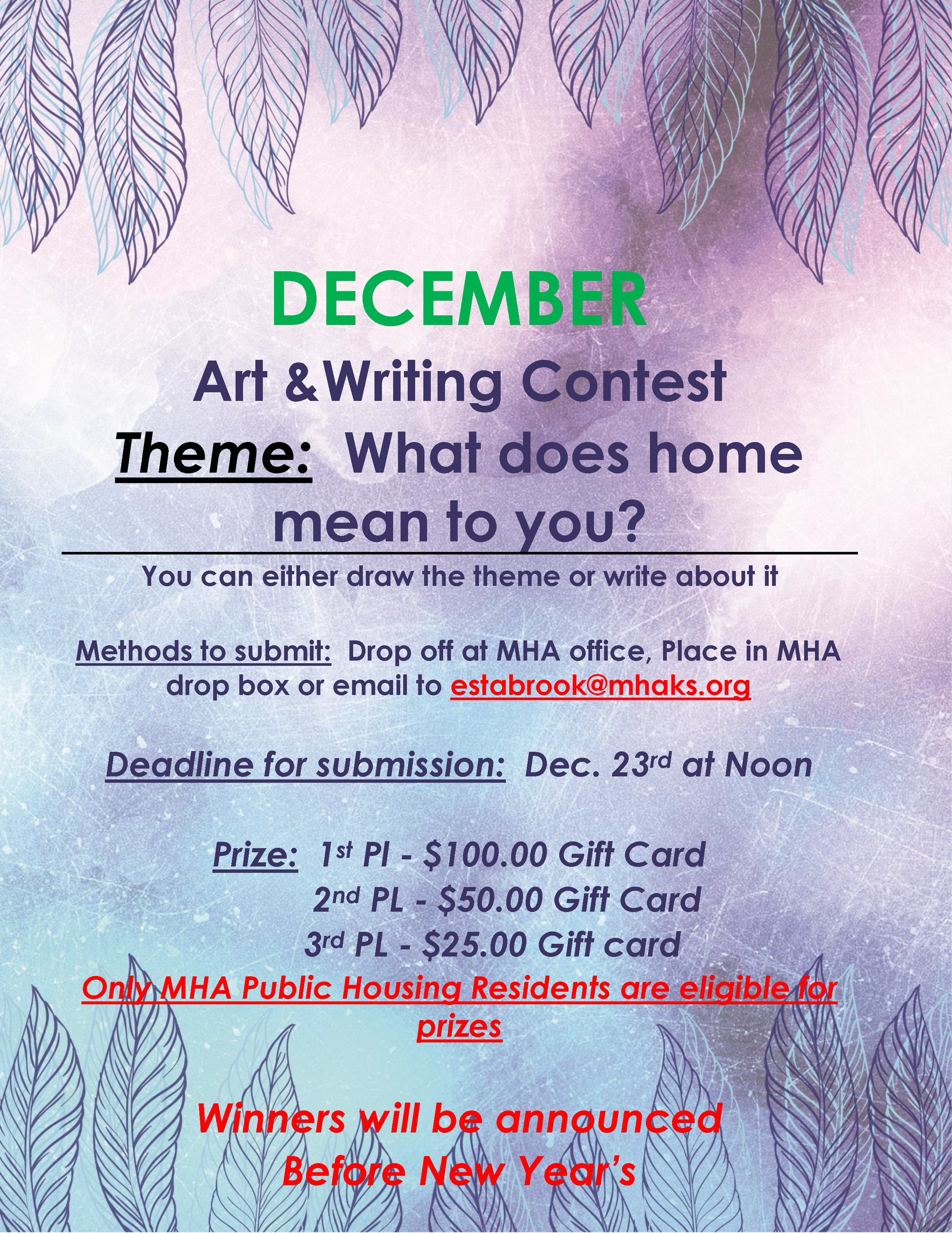 Winners were presented a Gift Card for $100, $50, $25 (2) by MHA Public Housing Manager Jeremy Meek & Housing Choice Voucher Program Director Katherine Linder.